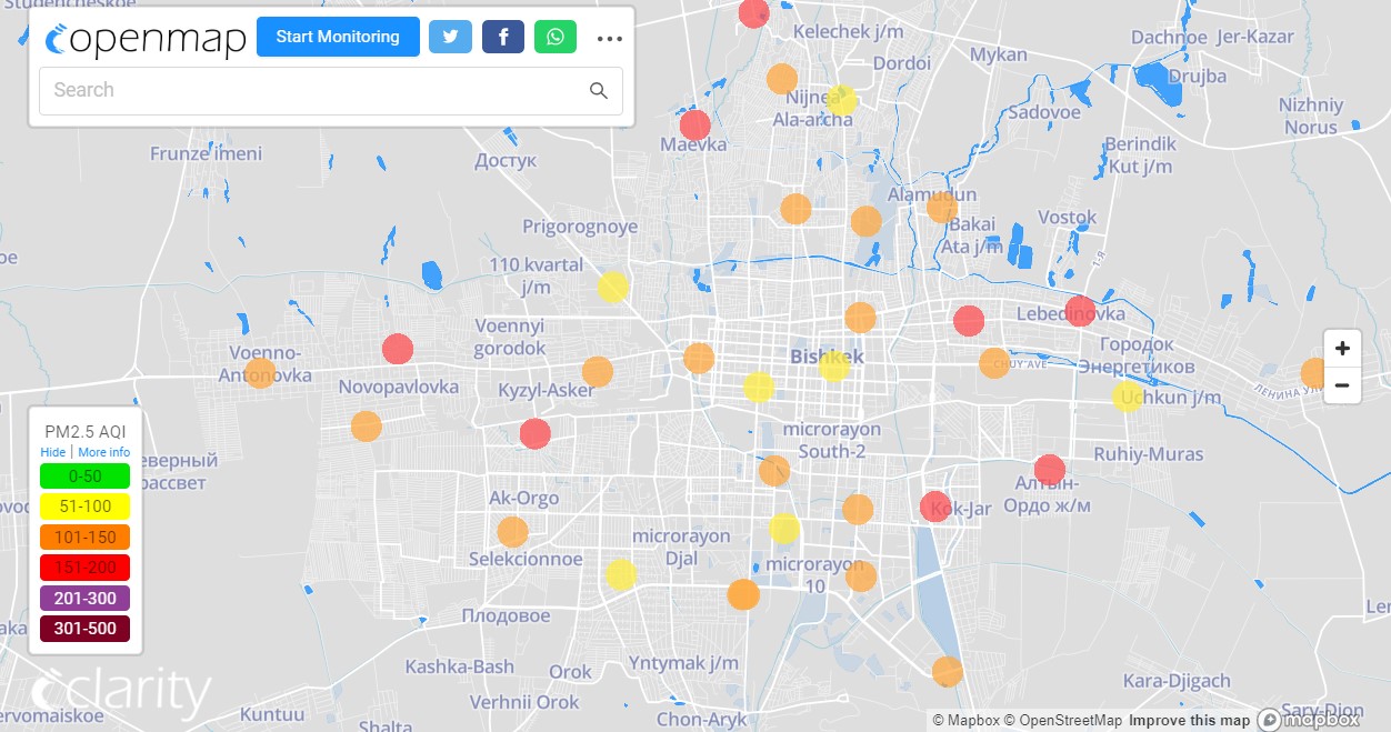 В рейтинге крупнейших городов мира по качеству воздуха World Air Quality Бишкек находится на 16-м месте.