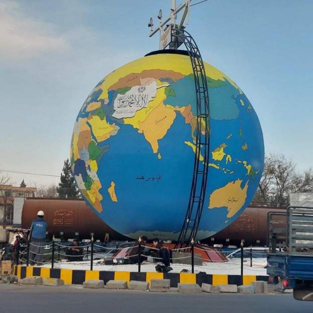 В Кабуле установили инсталляцию глобуса, на котором территория Исламского Эмирата Афганистан превышает реальную площадь государства и занимает земли соседних стран. Об этом сообщает BBC.