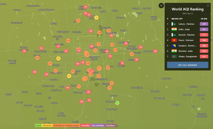 В 18.00 статус города отмечен как «нездоровый для чувствительных групп». Индекс качества воздуха, по данным сайта, составляет 138 (AQI).