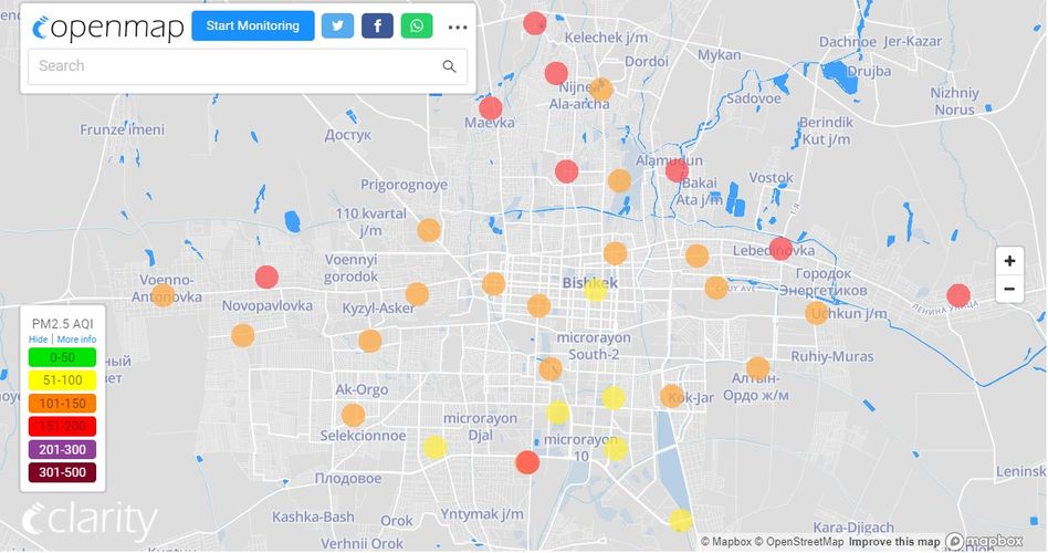 В рейтинге крупнейших городов мира по качеству воздуха World Air Quality Бишкек поднялся на 19-е место.