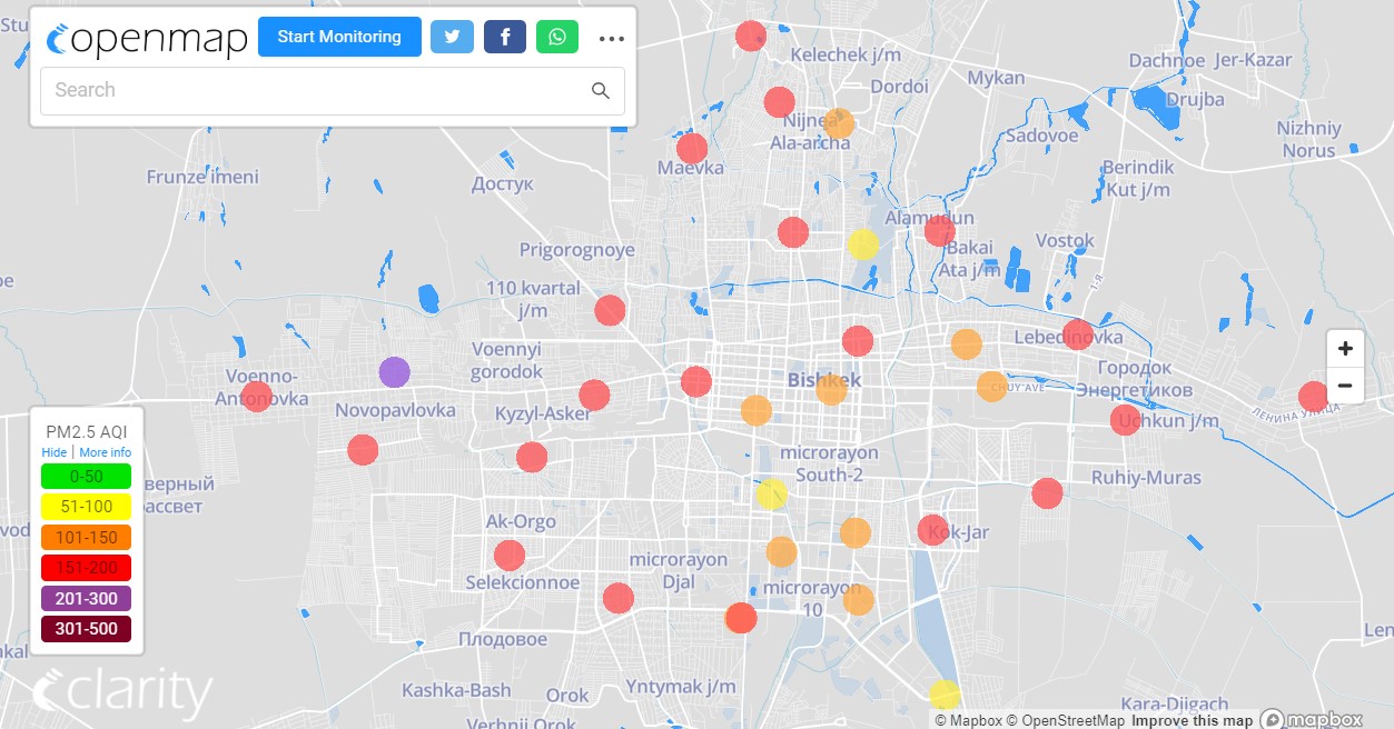 В рейтинге крупнейших городов мира по качеству воздуха World Air Quality Бишкек опустился на 23-е место.