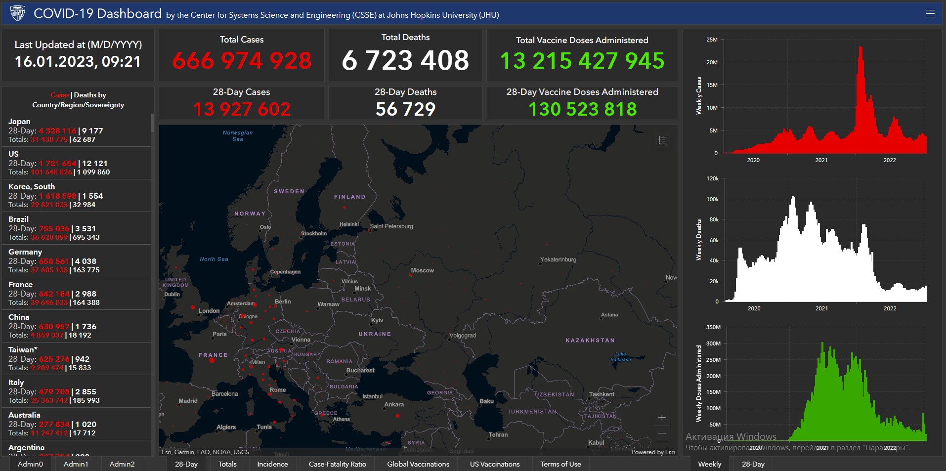 Всего в мире с начала пандемии коронавирусом заразились 666 миллионов 974 тысячи 928 человек. Больше всего в США (101 миллион 648 тысяч 826), Индии (44 миллиона 682 тысячи 264), Бразилии (36 миллионов 628 тысяч 99), Франции (39 миллионов 646 тысяч 833), Великобритании (24 миллиона 475 тысяч 895), России (21 миллион 548 тысяч 111), Турции (17 миллионов 42 тысячи 722), Аргентине (10 миллионов 4 тысячи 679), Иране (7 миллионов 562 тысячи 610), Колумбии (6 миллионов 343 тысячи 59), Испании (13 миллионов 711 тысяч 251), Италии (25 миллионов 363 тысячи 742) и Германии (37 миллионов 605 тысяч 135).Количество смертей от коронавируса достигло 6 миллионов 723 тысяч 408. За трое суток показатель вырос на 4 тысячи 687 человек. В том числе в США всего с начала пандемии скончались 1 миллион 99 тысяч 860 человек, Бразилии — 695 тысяч 343, Индии — 530 тысяч 726, Мексике — 331 тысяча 510, России — 386 тысяч 460, Великобритании — 215 тысяч 633, Италии — 185 тысяч 993.