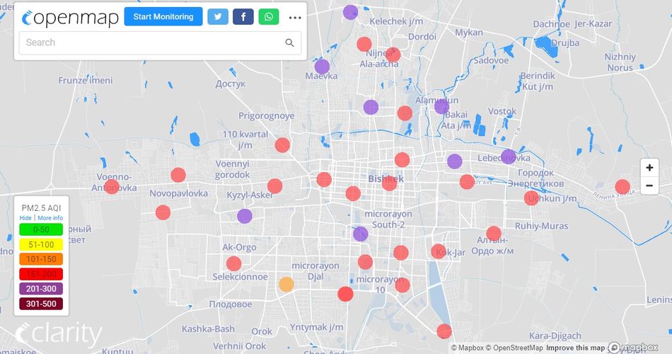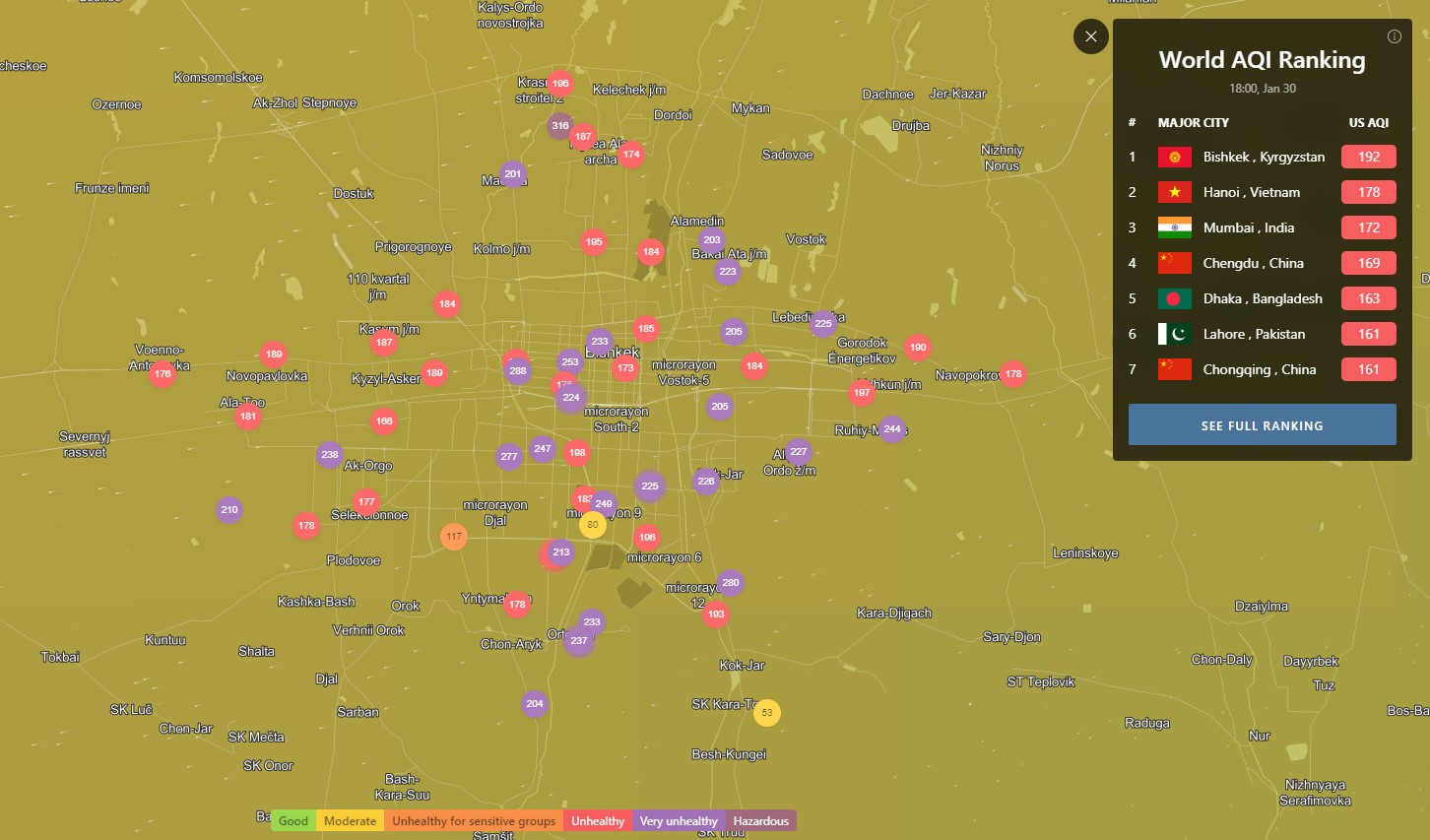 В рейтинге крупнейших городов мира по качеству воздуха World Air Quality Бишкек вновь поднялся на первое место.