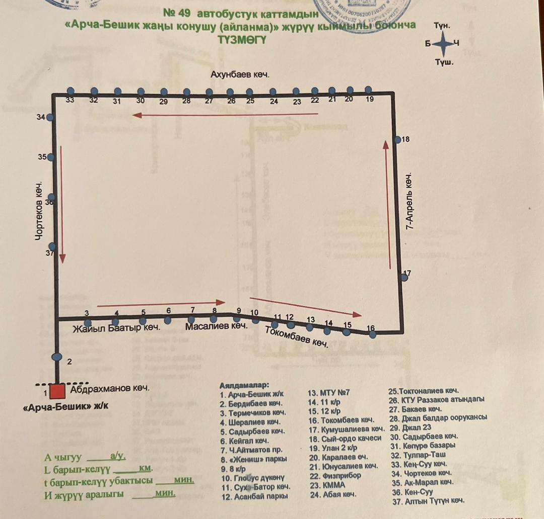 Маршрут № 49 — жилмассив «Арча-Бешик» — кольцевой, протяженность 24,2 километра, интервал — 7 минут. Выделено 11 автобусов.