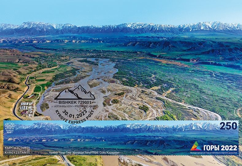 На почтовой миниатюре представлены хребет Чаар-Таш, урочище Тогуз-Торо и село Казарман. На купоне листа изображены ущелье Беш-Таш, озеро с тем же названием, хребет Туюк-Тор и перевал Итагар. Автор фотографий — Владислав Ушаков, дизайнер — Дарья Майер.