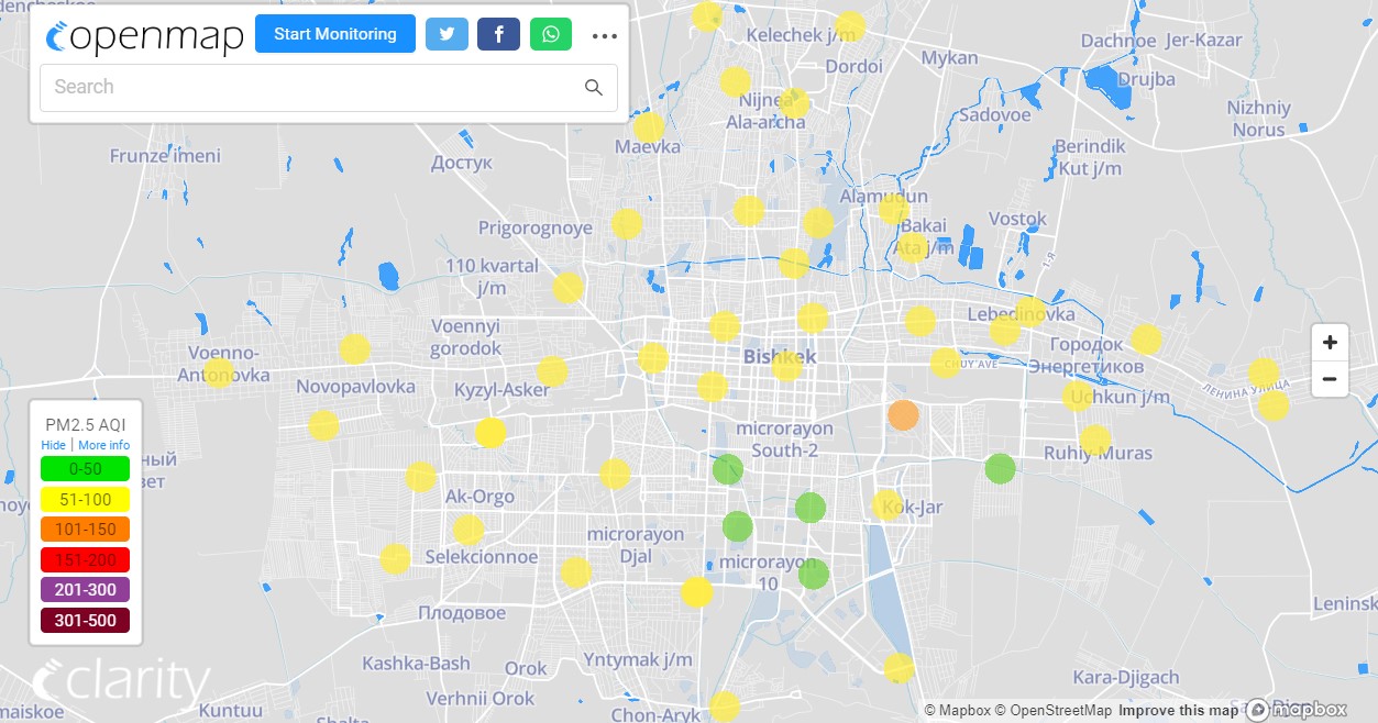 В рейтинге крупнейших городов мира по качеству воздуха World Air Quality Бишкек опустился на 57-е место.