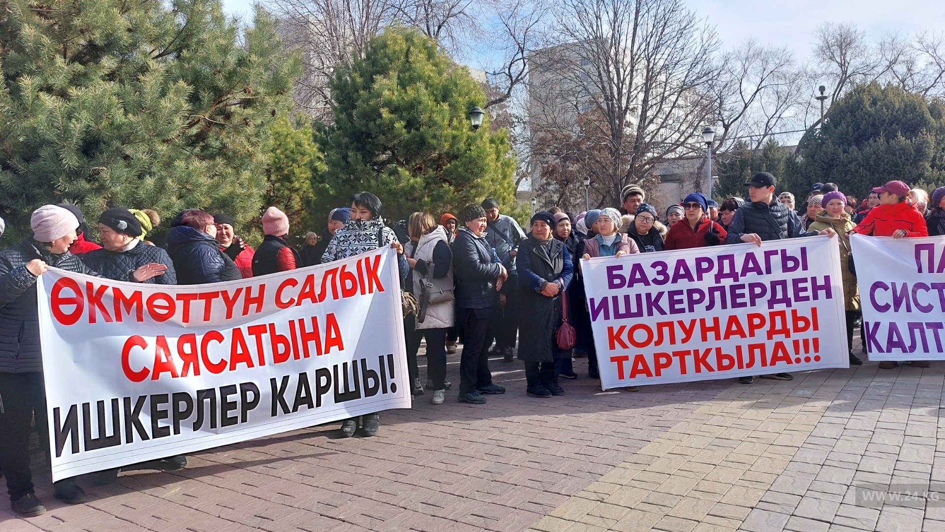 На акцию протеста пришли предприниматели, торгующие на рынках «Дордой-Дыйкан», «Дордой-моторс», «Азиз базар», Ошском базаре и других.
