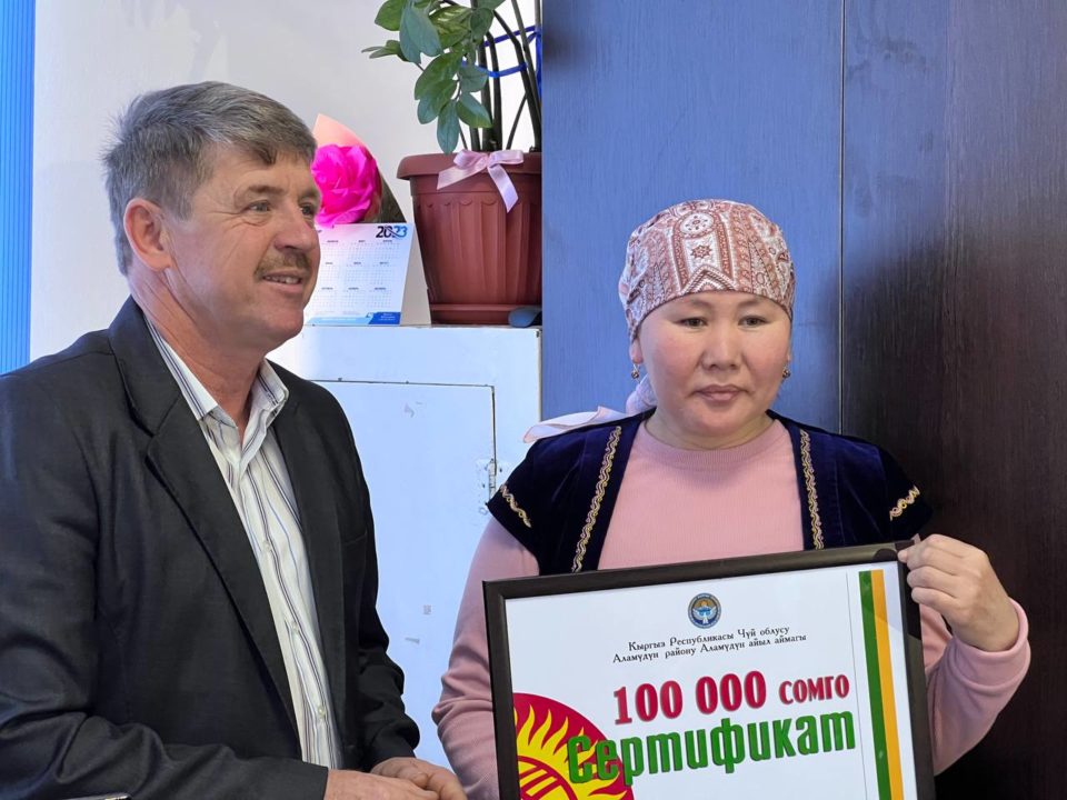 В Аламединском айыл окмоту 8 семей получили по 100 тысяч сомов по соцконтракту