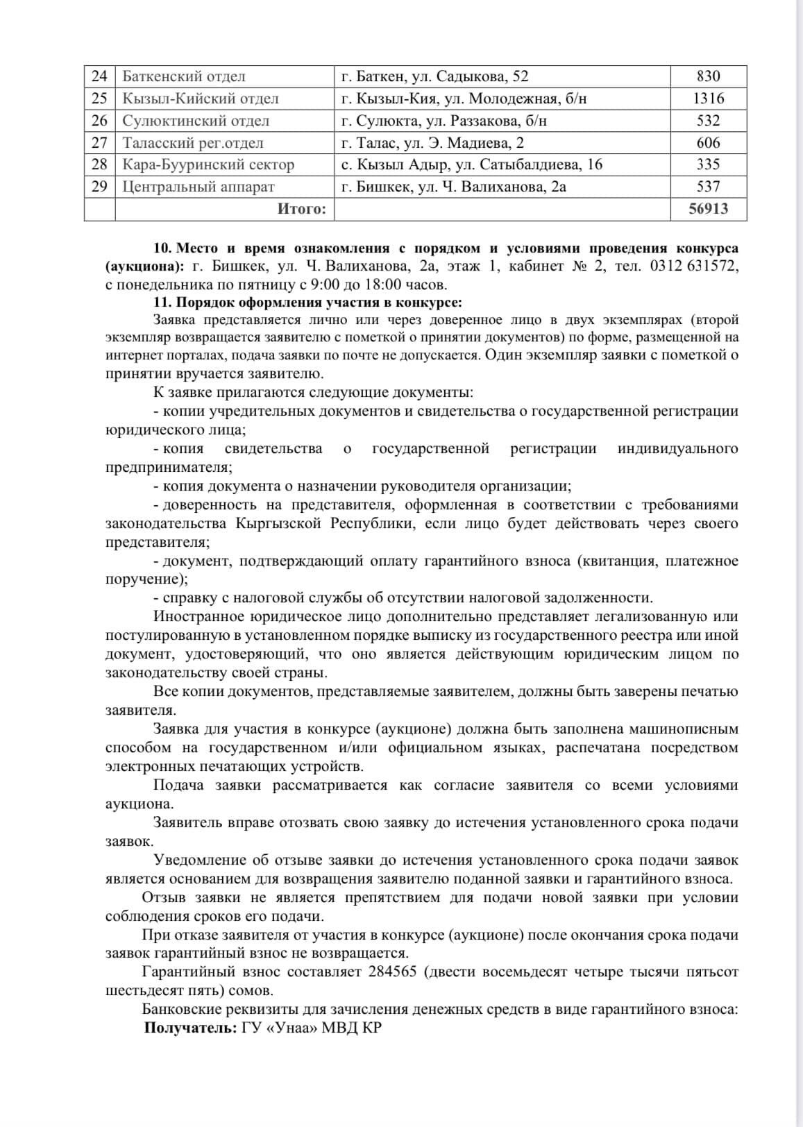 Общее количество товара — 56 тысяч 913 килограммов. Стартовая цена — 100 сомов за килограмм.