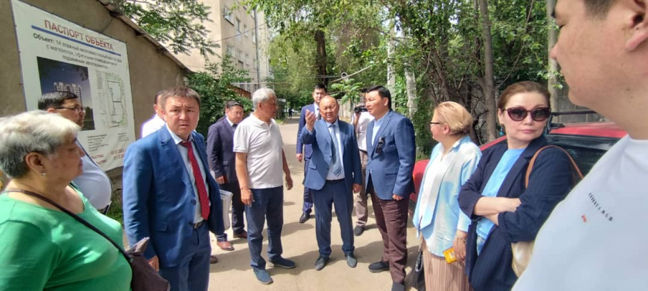 Согласно определению границ участка при многоквартирном жилом доме № 63 на бульваре Эркиндик, проезд на улицу Жумабека входит в территорию придомового земельного участка. Сейчас идут судебные разбирательства, по результатам которого будет принято решение относительного этого проезда.