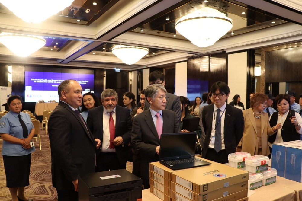 В церемонии участвовали посол Республики Корея в Кыргызстане Ли Вонджэ, заместитель министра здравоохранения Бакыт Джангазиев, руководитель ЦГСЭНТ Рыспек Сыдыгалиев, глава миссии МОМ в КР Зейнал Гаджиев.