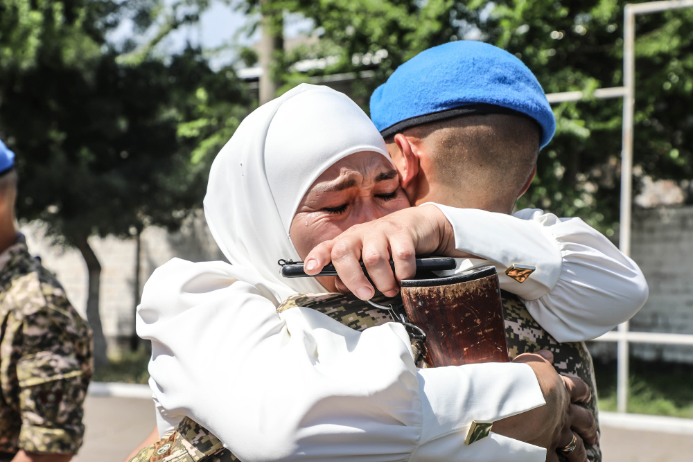 В мероприятии приняли участие и поздравили командующий Национальной гвардией полковник Талантбек Эргешов, ветеран генерал-майор Асанбек Алымкожоев, а также родные и близкие новобранцев.