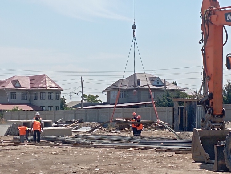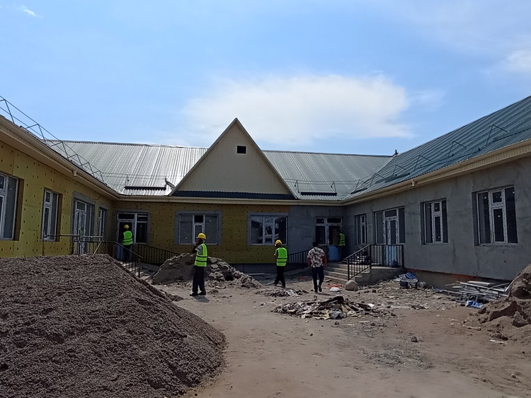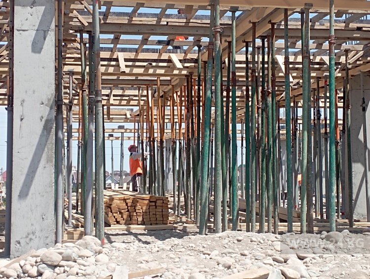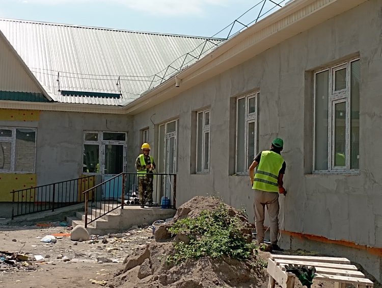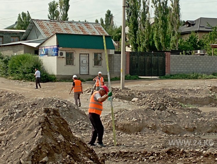 Прораб Кубатбек Ибраев обьяснил, что работы идут с небольшим опозданием, так как пришлось вносить изменения в проект.