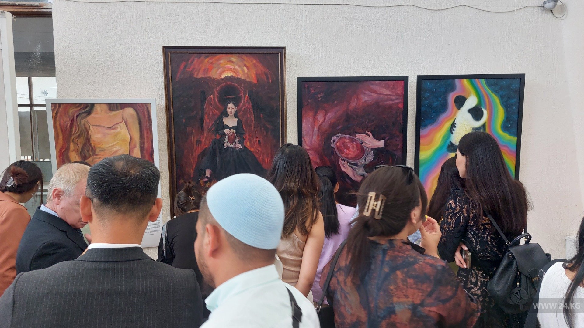 В Бишкеке в Кыргызском национальном музее изобразительных искусств имени Гапара Айтиева проходит персональная выставка дочери бывшего президента Алмазбека Атамбаева, художницы, иллюстратора Алии Шагиевой «Дуальность: Свет, Тьма и то, что между ними».