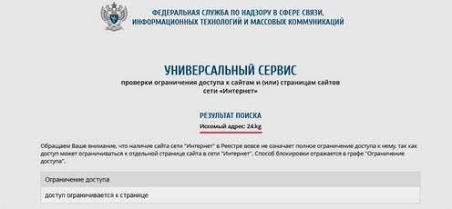 На сайте самого Роскомнадзора говорится, что доступ ограничивается к странице сайта 24-kg.com. Но читатели сообщают, что заблокированы не отдельные страницы ресурса, а сайт полностью.