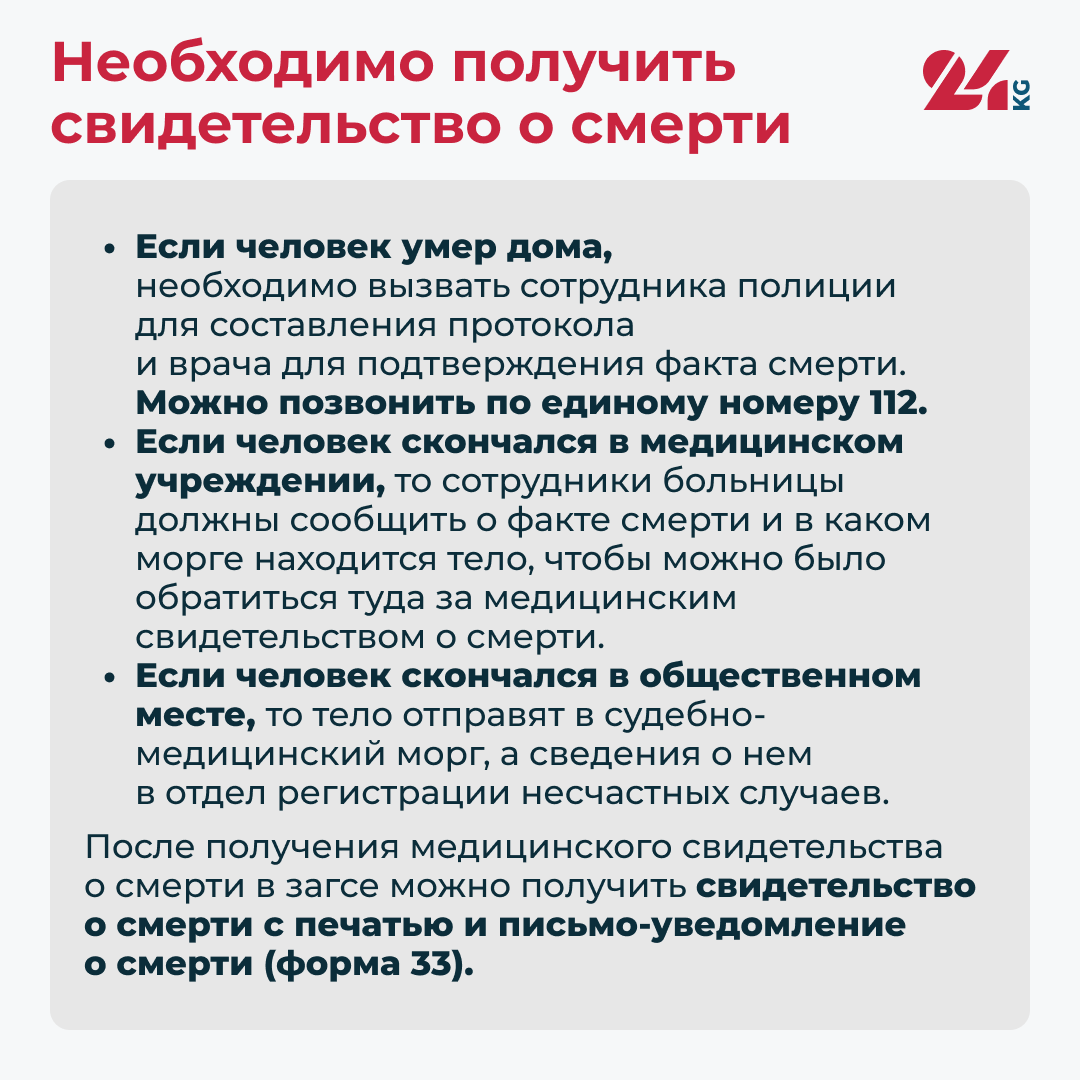 В Министерстве труда, социального обеспечения и миграции рассказали 24-kg.com, какие шаги следует предпринять, если гражданин Кыргызской Республики скончался в России.