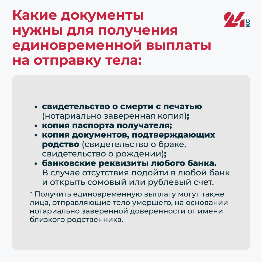 * Получить единовременную выплату могут также лица, отправляющие тело умершего, на основании нотариально заверенной доверенности от имени близкого родственника.