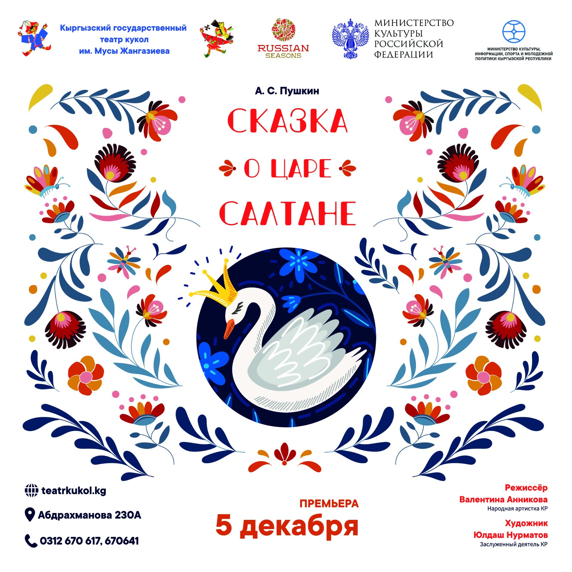 Кыргызский государственный театр кукол имени Мусы Жангазиева покажет спектакль «Сказка о царе Салтане». Об этом сообщили в театре.