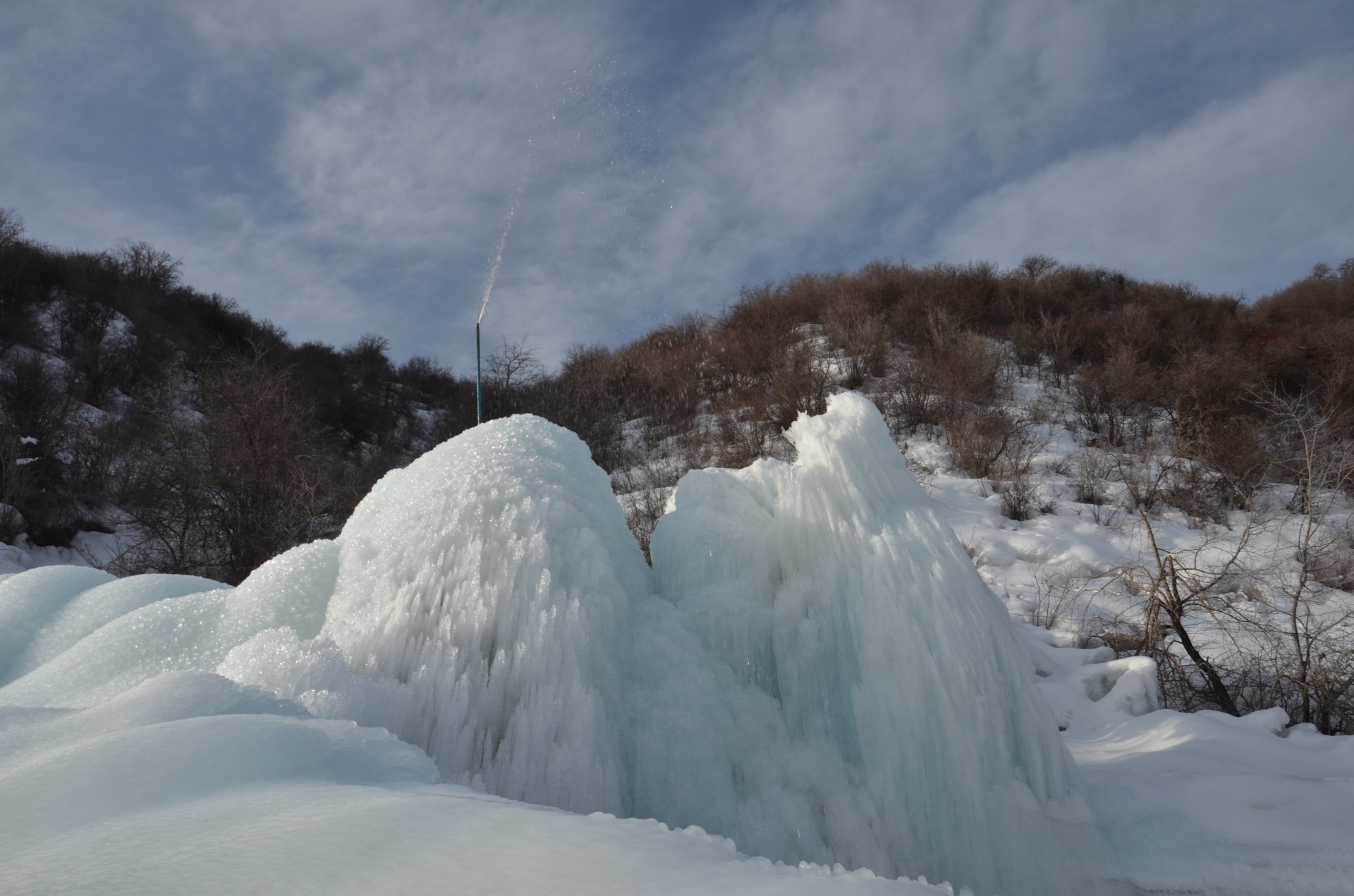 Жители деревни сами взялись за обустройство ледника при технической и финансовой поддержке со стороны ФАО. Буквально за неделю 55 человек вручную выкопали траншею и проложили трубопровод от горного ручья до места выпаса скота. Конец трубопровода затем подняли на 20 метров над уровнем земли. Зимой сформировался ледник, когда вода из трубопровода начала замерзать и медленно превращаться в огромную ледяную башню. А летом ледяная гора медленно таяла, обеспечивая местных жителей постоянным доступом к пресной воде для полива и других нужд.