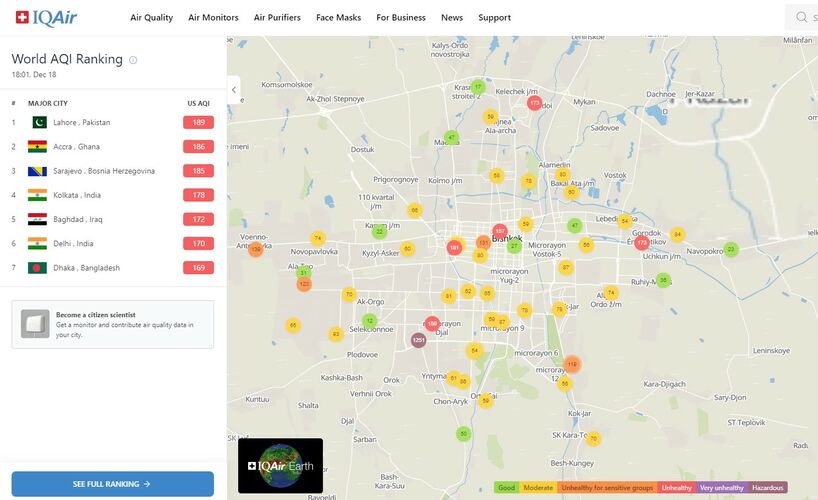 В рейтинге крупнейших городов мира по качеству воздуха World Air Quality Бишкек находится на 33-м месте.