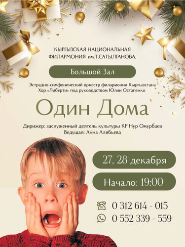 Артисты эстрадно-симфонического оркестра филармонии под управлением дирижера Нура Омурбаева сыграют музыку из фильмов «Один дома».