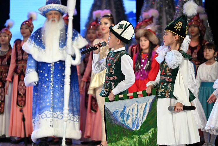 Детям представили новогоднюю театрально-концертную программу на тему охраны окружающей среды и экологии и вручили подарки от имени Садыра Жапарова.