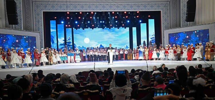 Сегодня президент Садыр Жапаров принял участие в традиционном новогоднем представлении для детей в Кыргызской национальной филармонии имени Токтогула Сатылганова.