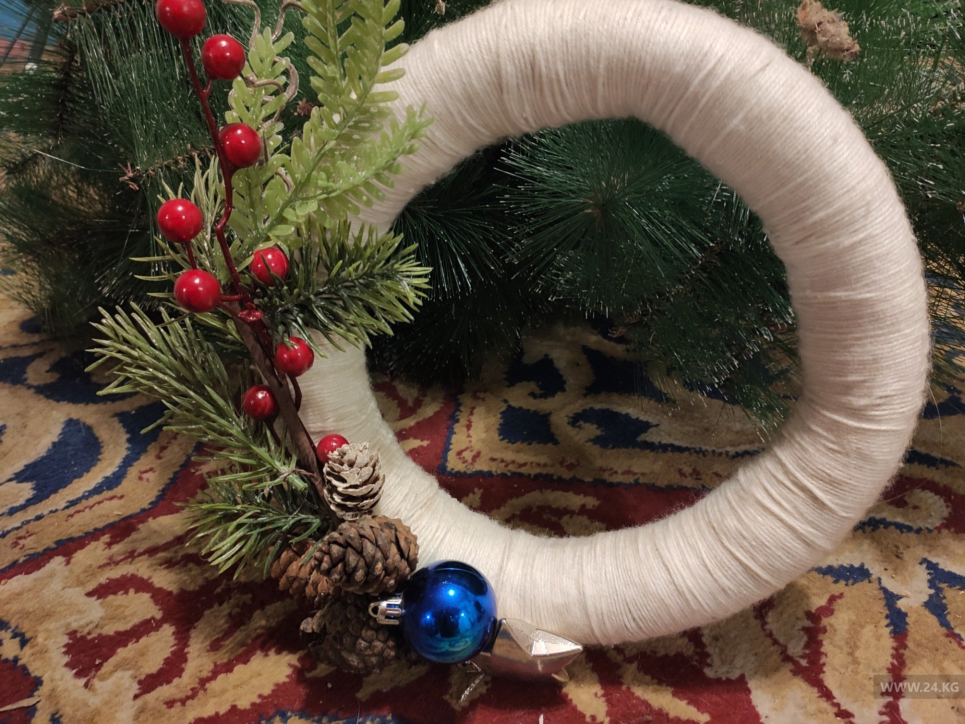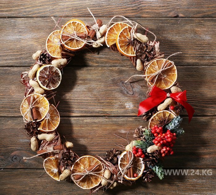 Мы с семьей традиционно делаем несколько венков. Обычно из мишуры, шишек, ниток для вязания и цитрусовых. В этом году стандартный венок стоит от 2 тысяч сомов. На покупку всех (!) комплектующих мы потратили около 1,8 тысячи сомов. Ну и шишки с ветками елок в ближайшем сквере насобирали. Экономия в чистом виде.