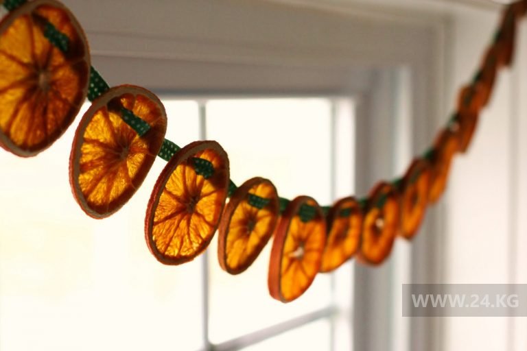 Относительно быстрый и красивый вариант создать праздничное настроение в квартире — украсить окна. На кухне, например, можно повесить гирлянду из цитрусовых. Просто нарезаете их кружочками, сушите и нанизываете на нитку.