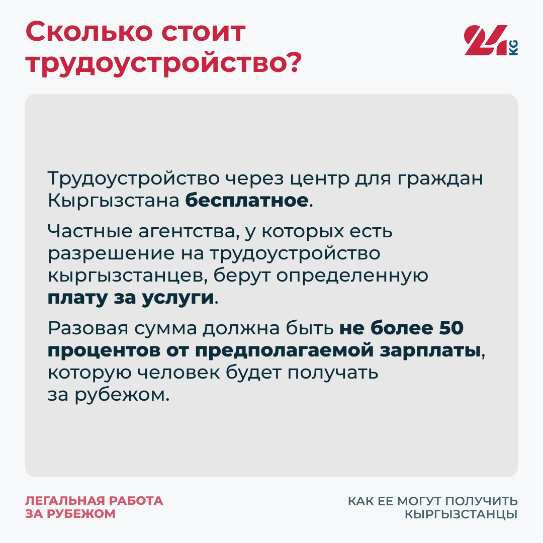 Частные агентства, у которых есть разрешение на трудоустройство кыргызстанцев, берут определенную плату за услуги.