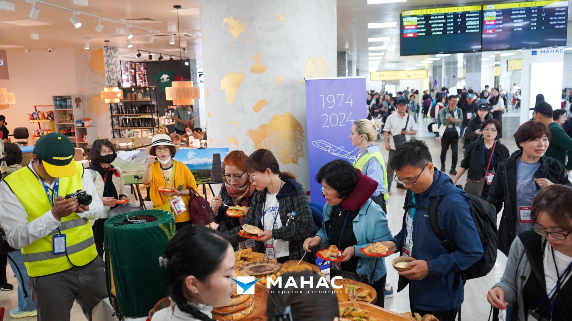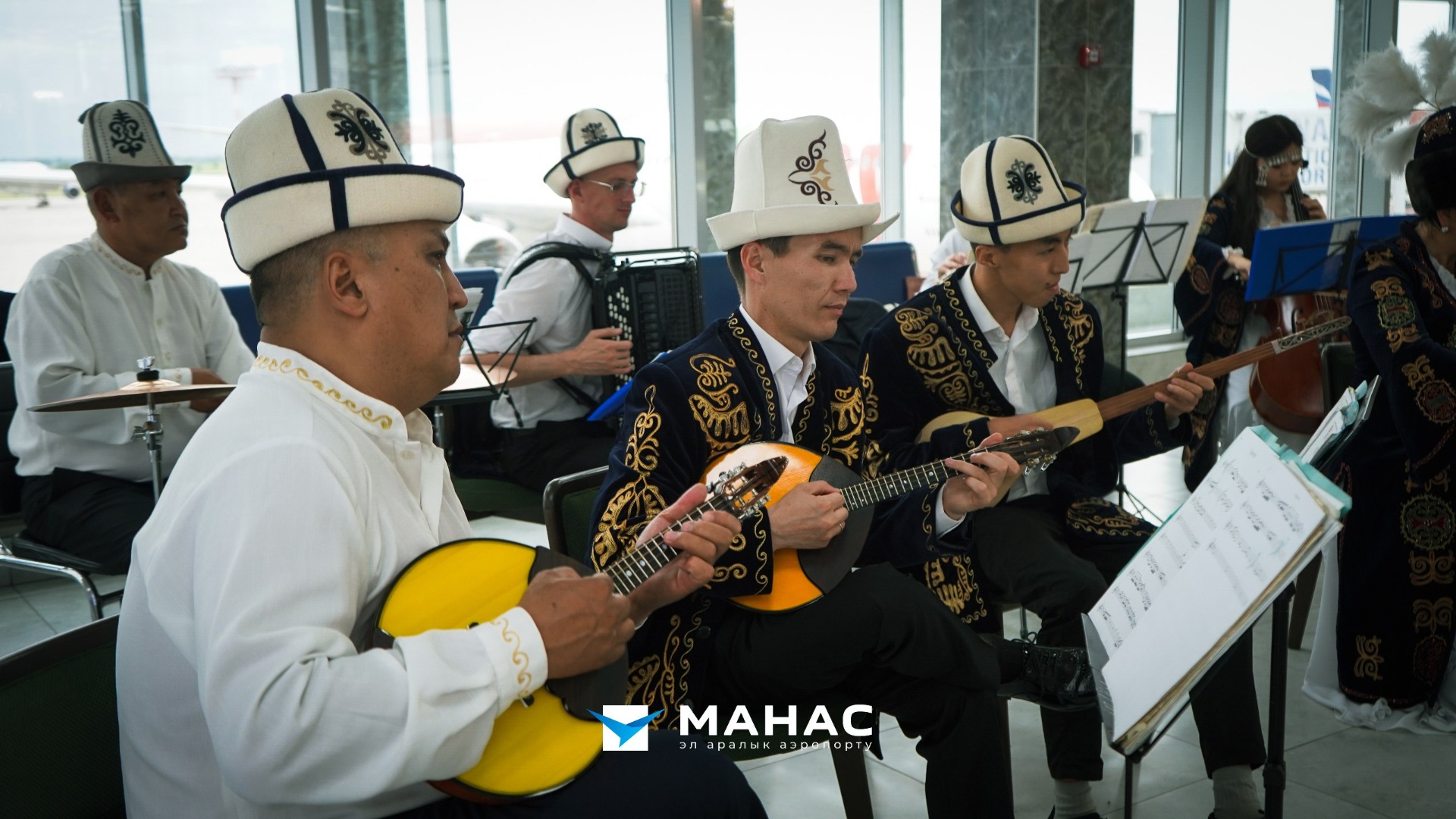 Для пассажиров транзитного рейса со стороны аэропорта «Манас» подготовлена развлекательная программа — этнофуршет, фотовыставка и видеовыставка достопримечательностей КР, а также выступление национального классического оркестра.