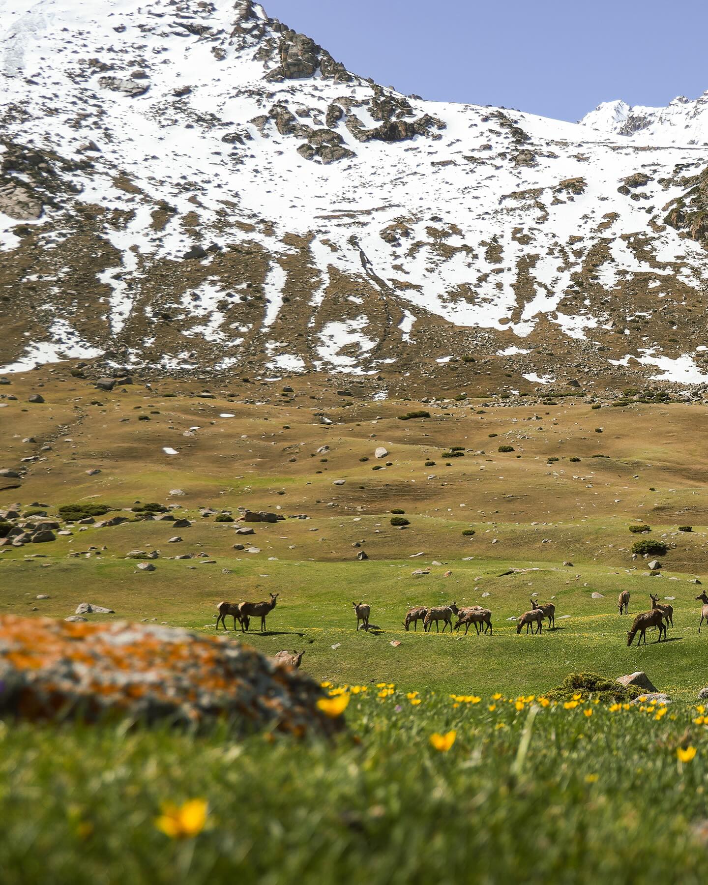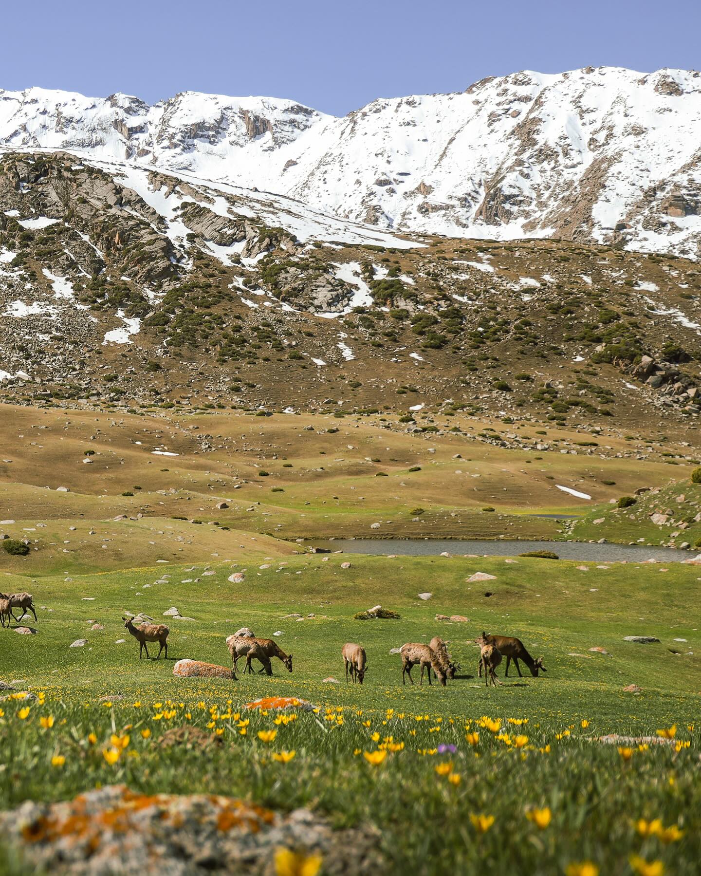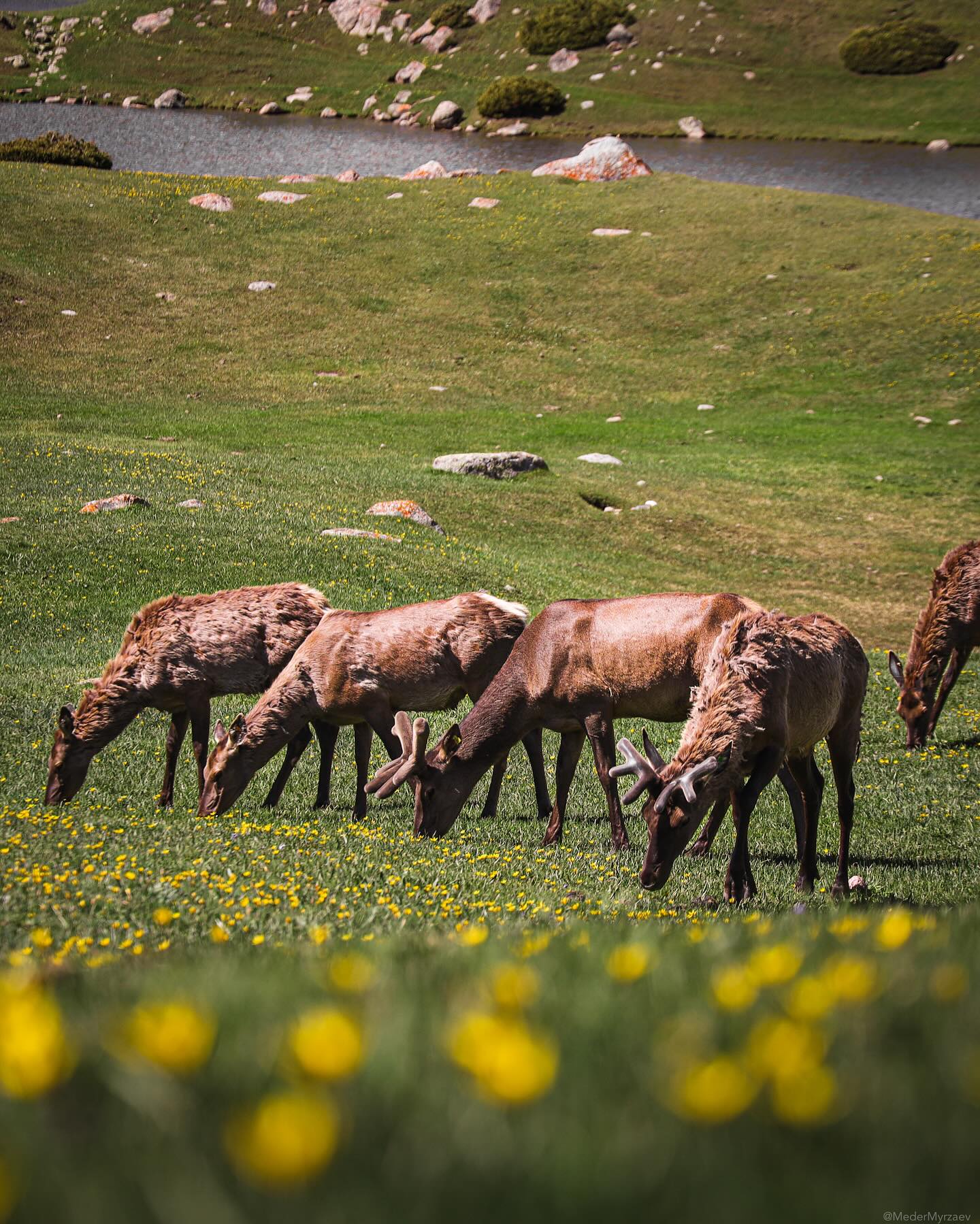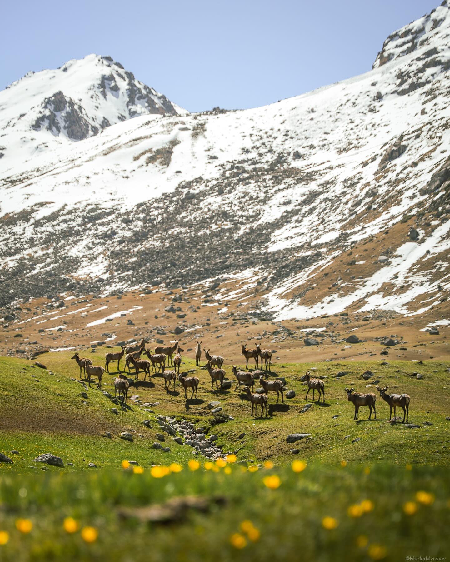 Блогер Медер Мырзаев на своей странице в Facebook опубликовал фотографии маралов на территории природного заповедника «Беш-Таш» в Таласе.