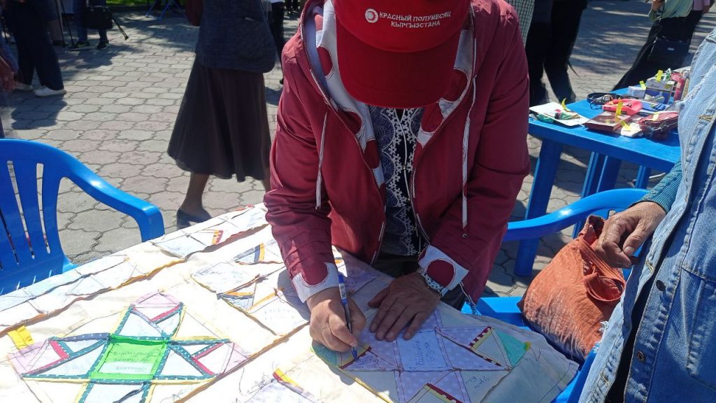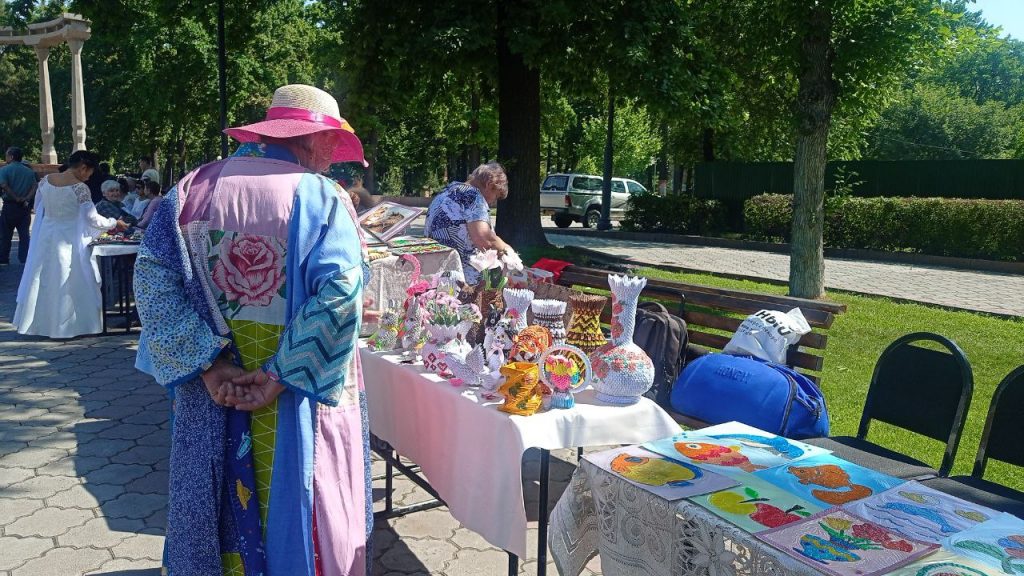 В ярмарке участвовали около 50 групп самопомощи пожилых людей из Иссык-Кульской, Чуйской областей и Бишкека. Они представили изделия из войлока, шерсти, сувенирную национальную продукцию и многое другое.