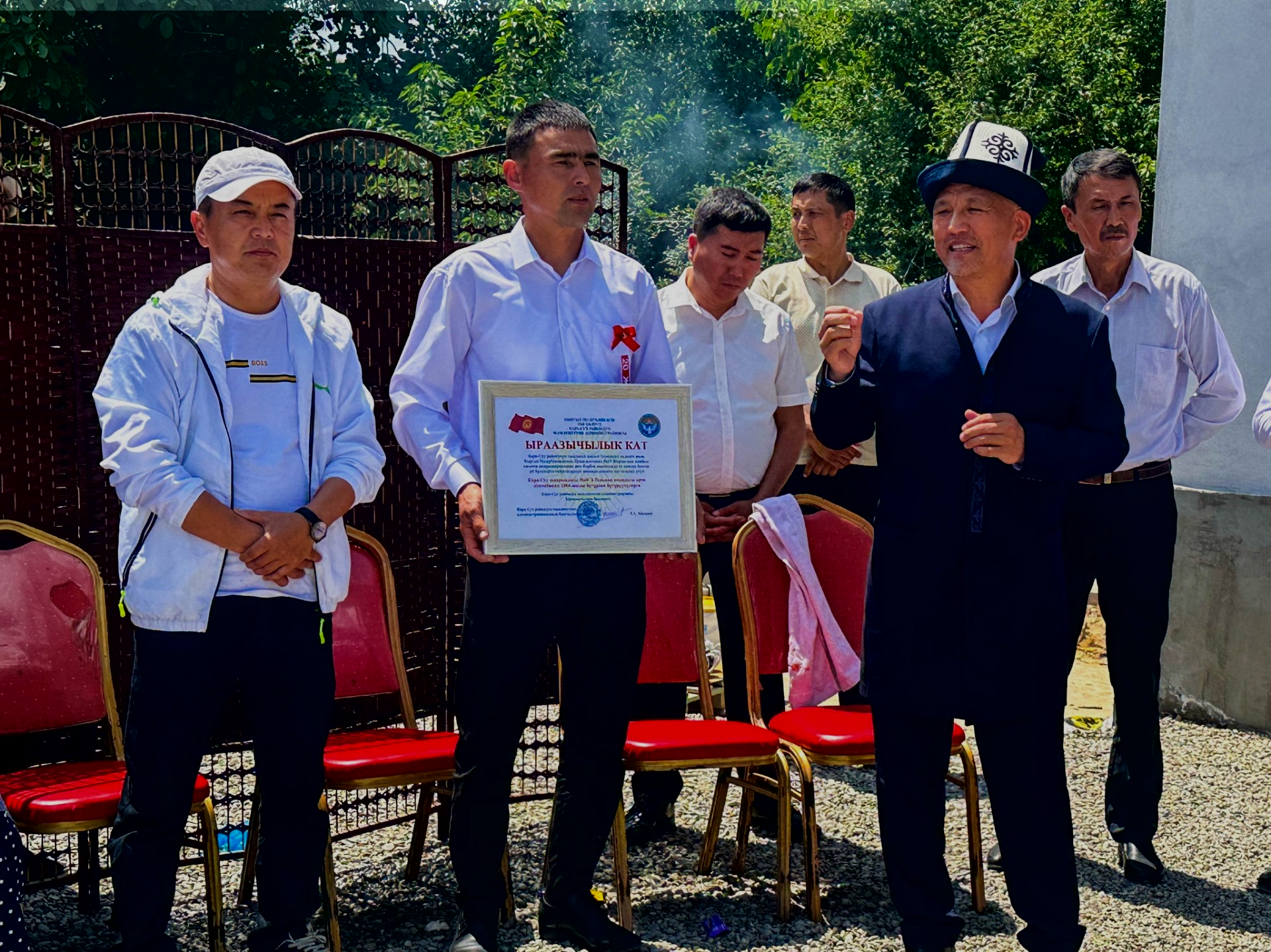 Отмечается, что Юсупжан Юсупов инвалид III группы. Отец троих детей. Выпускникам средней школы № 49 имени Э.Тельмана в городе Кара-Суу вручены благодарственные письма от имени акима района Темирболота Абыкеева.