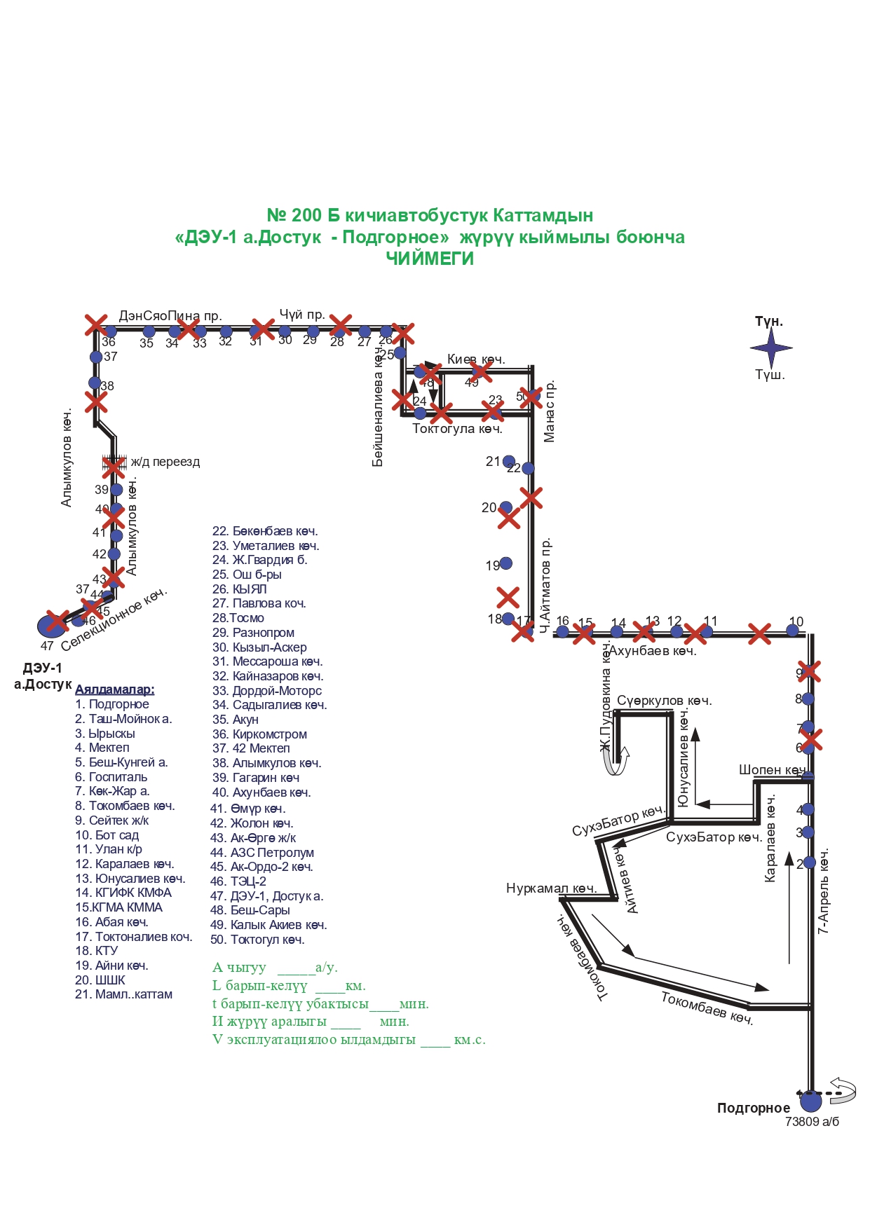 - № 200 — улица Селекция, ДЭУ-1 и далее по схеме до улицы Бейшеналиевой и обратно;
