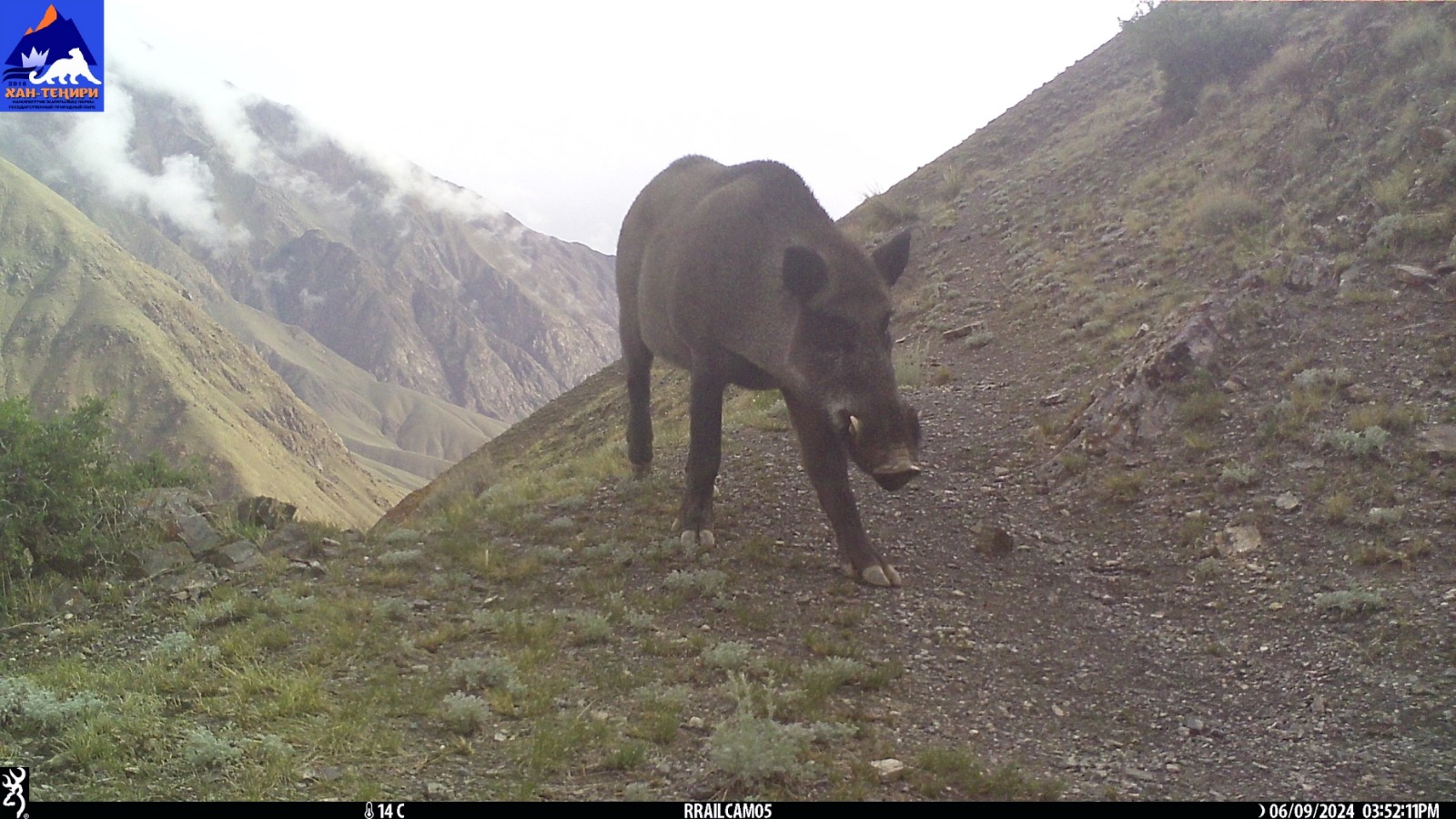 На одной горной тропе в фотоловушки попали несколько животных: кабан, сурок серый, заяц, лиса, каменная куница и козероги, а также находящиеся в Красной книге снежный барс, бурый медведь, рысь.