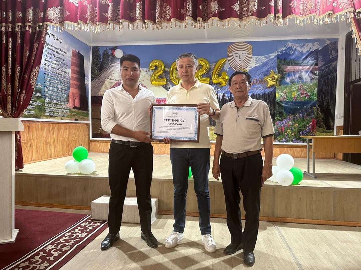 Также депутат посетил детский дом-интернат, расположенный в Панфиловском районе, и передал сертификат на 200 тысяч сомов из фонда спикера ЖК.