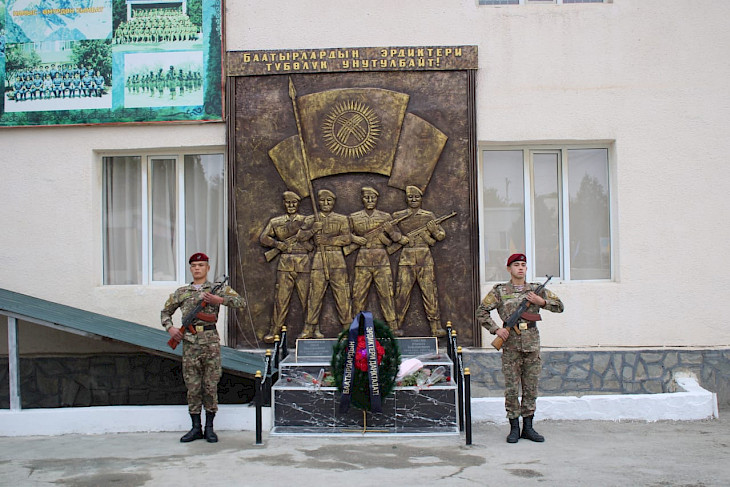 В войсковой части № 7707 Внутренних войск МВД Кыргызстана установили памятник в честь военнослужащих, погибших при выполнении боевого задания в вооруженном конфликте на кыргызско-таджикской границе 16 сентября 2022 года.