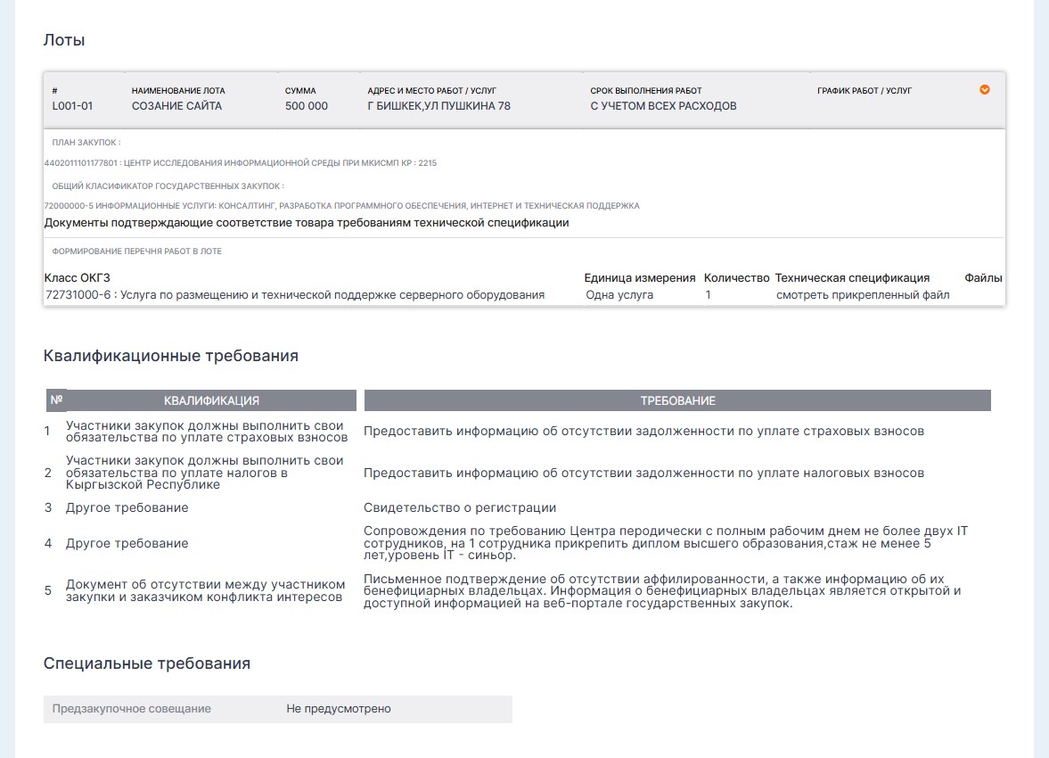 Отметим, что файл с технической спецификацией к объявлению не приложен. При этом срок приема заявок — до 20 ноября.