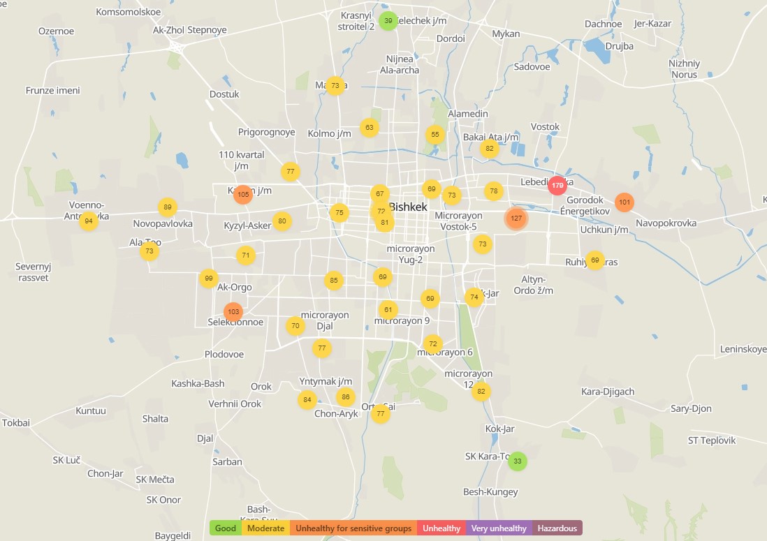 В рейтинге крупнейших городов мира по качеству воздуха World Air Quality на 18.00 Бишкек находится на 32-м месте.