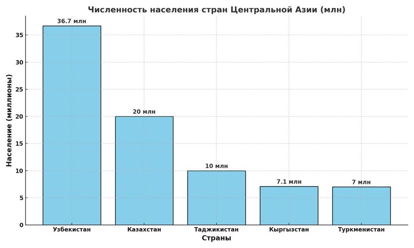 Однако, согласно данным PopulationPyramid.net, на 2024-й число жителей Центральной Азии составляет более 82 миллионов человек.