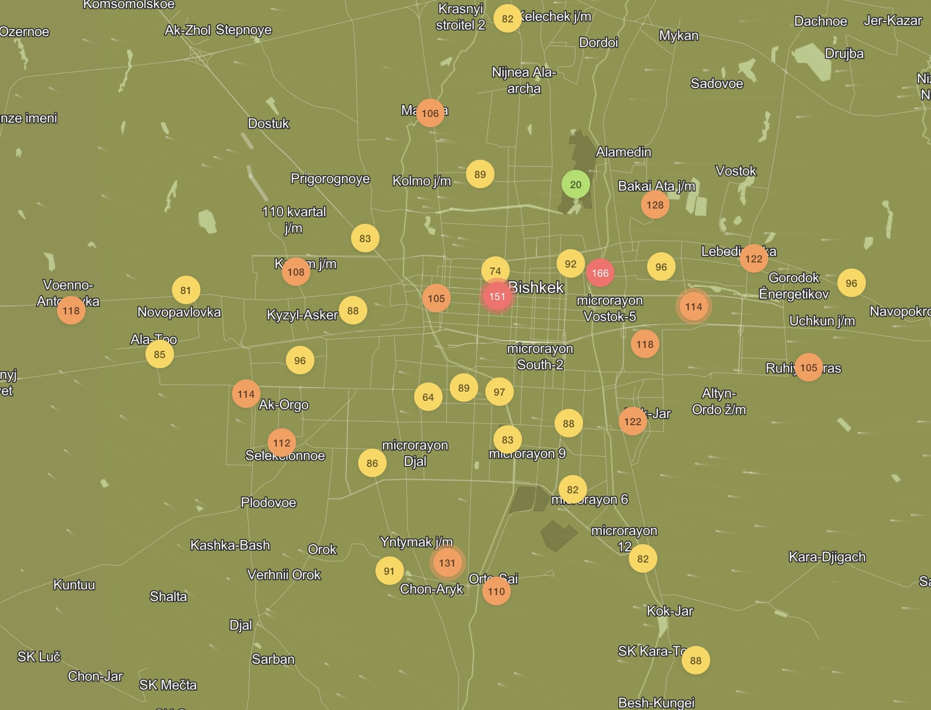 В рейтинге крупнейших городов мира по качеству воздуха World Air Quality на 18.00 Бишкек находится на 22-м месте.