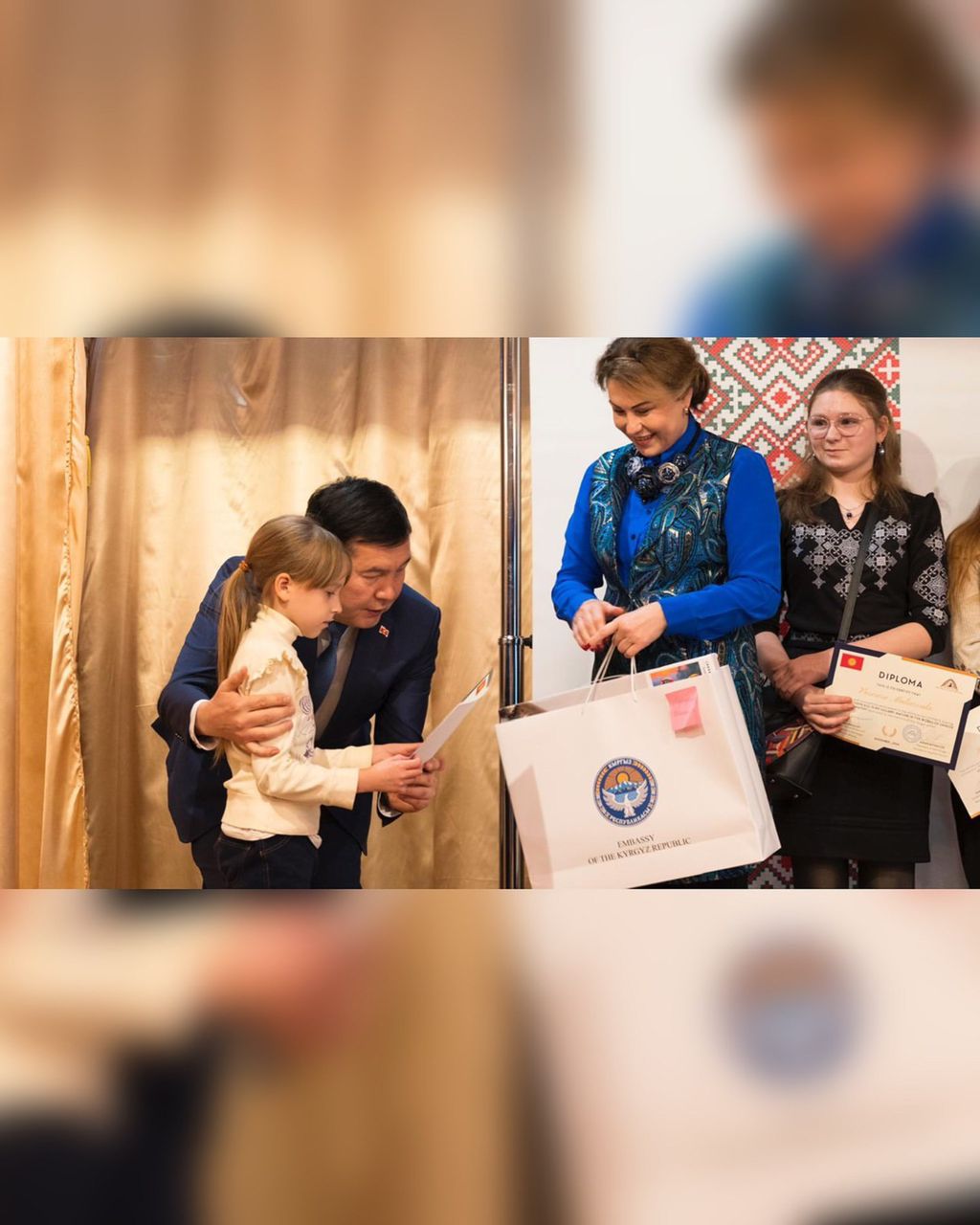 По данным дипмиссии, в честь 100-летия образования Кара-Киргизской автономной области для детей в Киеве провели торжественное мероприятие по подведению итогов всеукраинского конкурса детских рисунков по произведениям Чингиза Айтматова. Он ранее объявлен в рамках празднования 95-летия писателя. В конкурсе приняли участие более 1,5 тысячи детей из всех регионов Украины, 113 из них удостоены наград посольства.