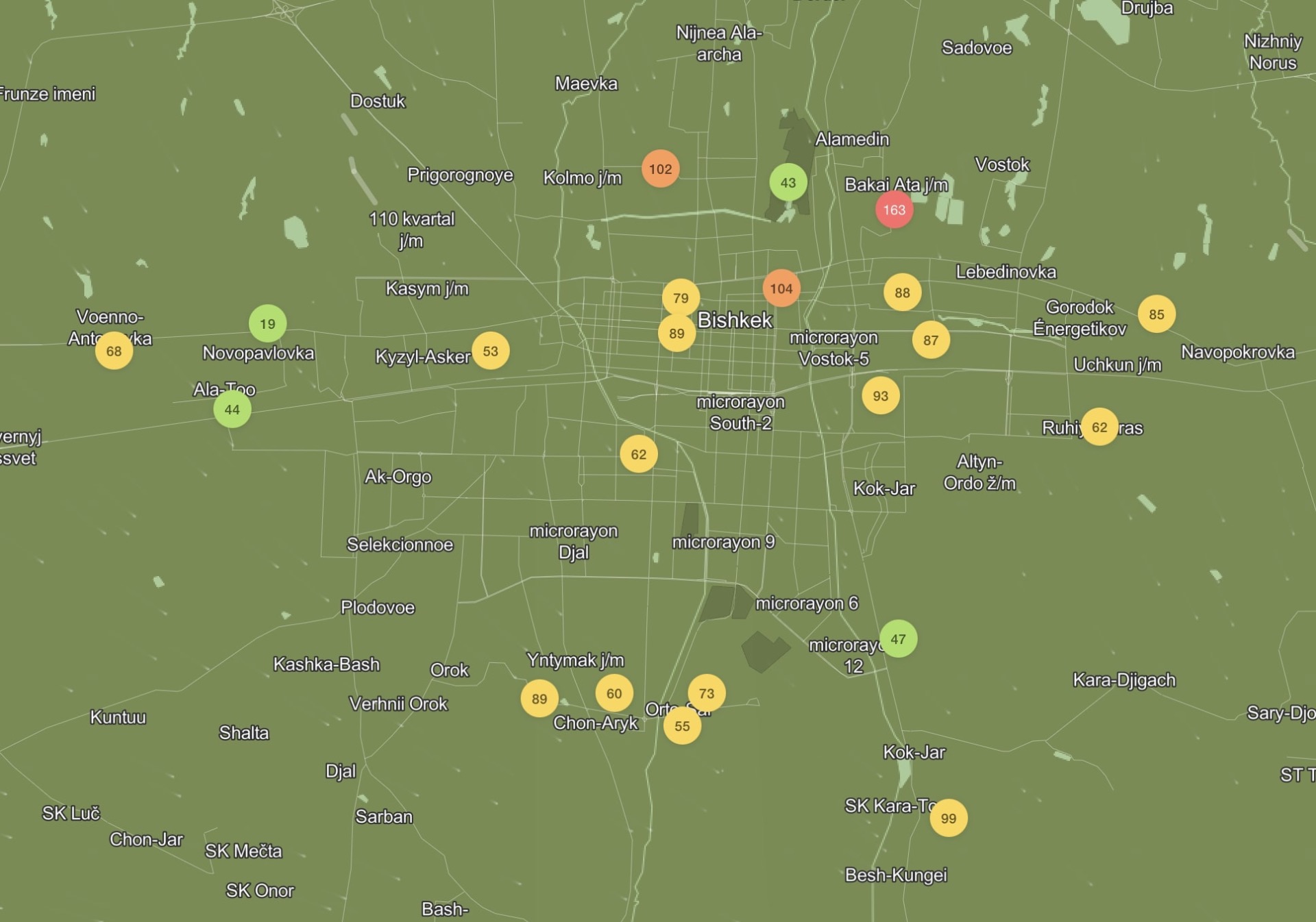 В рейтинге крупнейших городов мира по качеству воздуха World Air Quality на 18.00 Бишкек находится на 55-м месте.
