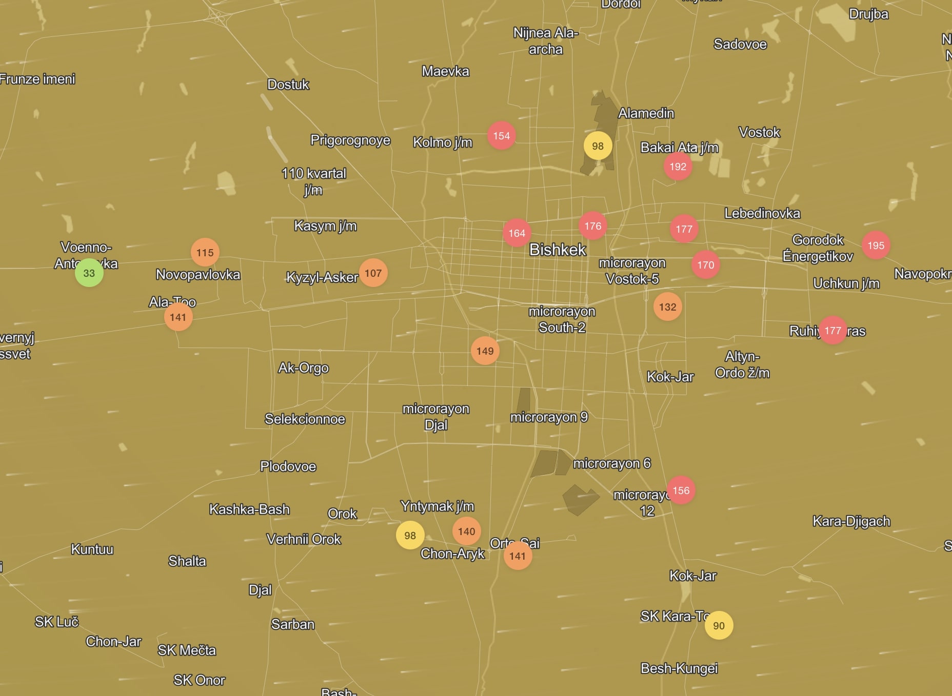 В рейтинге крупнейших городов мира по качеству воздуха World Air Quality на 18.00 Бишкек находится на 17-м месте.