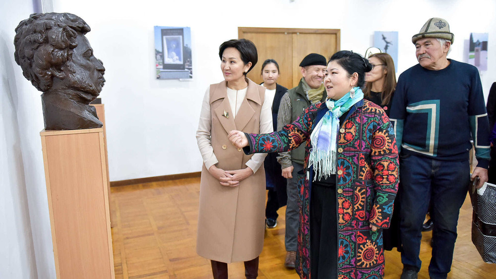 Первая леди страны Айгуль Жапарова посетила открытие выставки известного скульптора Тамилы Маматовой «Ритмы жизни», которая проходит в Кыргызском национальном музее изобразительных искусств имени Гапара Айтиева.