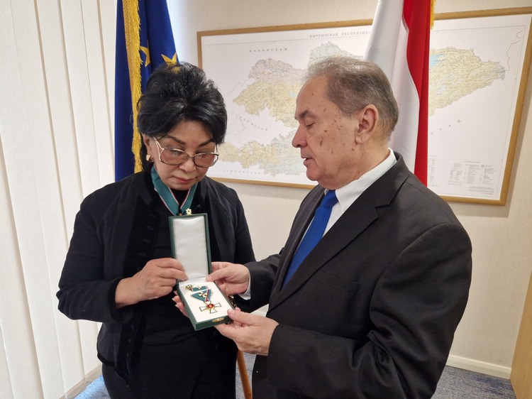При вручении присутствовал посол Венгрии в Кыргызстане Шандор Дороги.