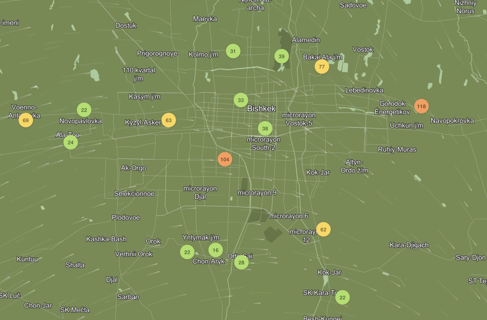 В рейтинге крупнейших городов мира по качеству воздуха World Air Quality на 18.00 Бишкек находится на 102-м месте.