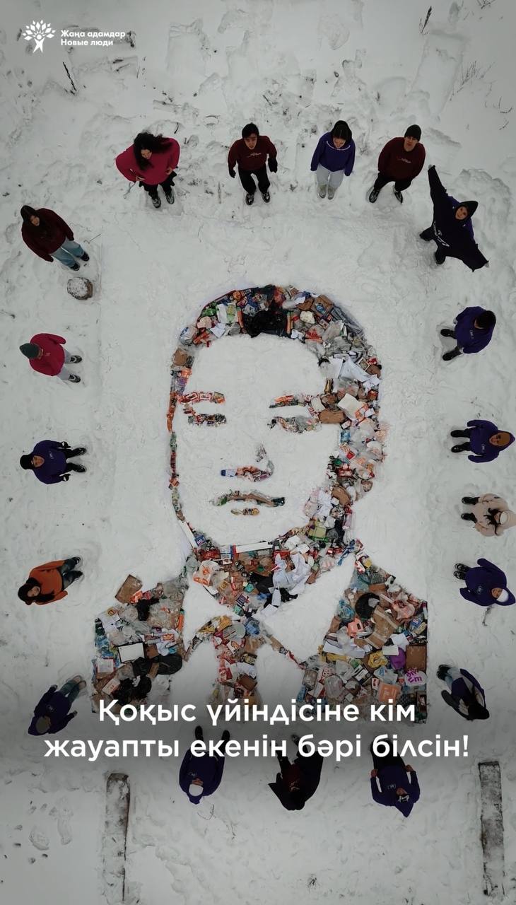 «Жаңа адамдар» обратились к заместителю акима Есильского района Мадияру Нугербекову, в чьей зоне ответственности находится санитарное состояние этой территории. Чтобы привлечь внимание, активисты создали арт-инсталляцию — портрет чиновника из отходов прямо на территории свалки.