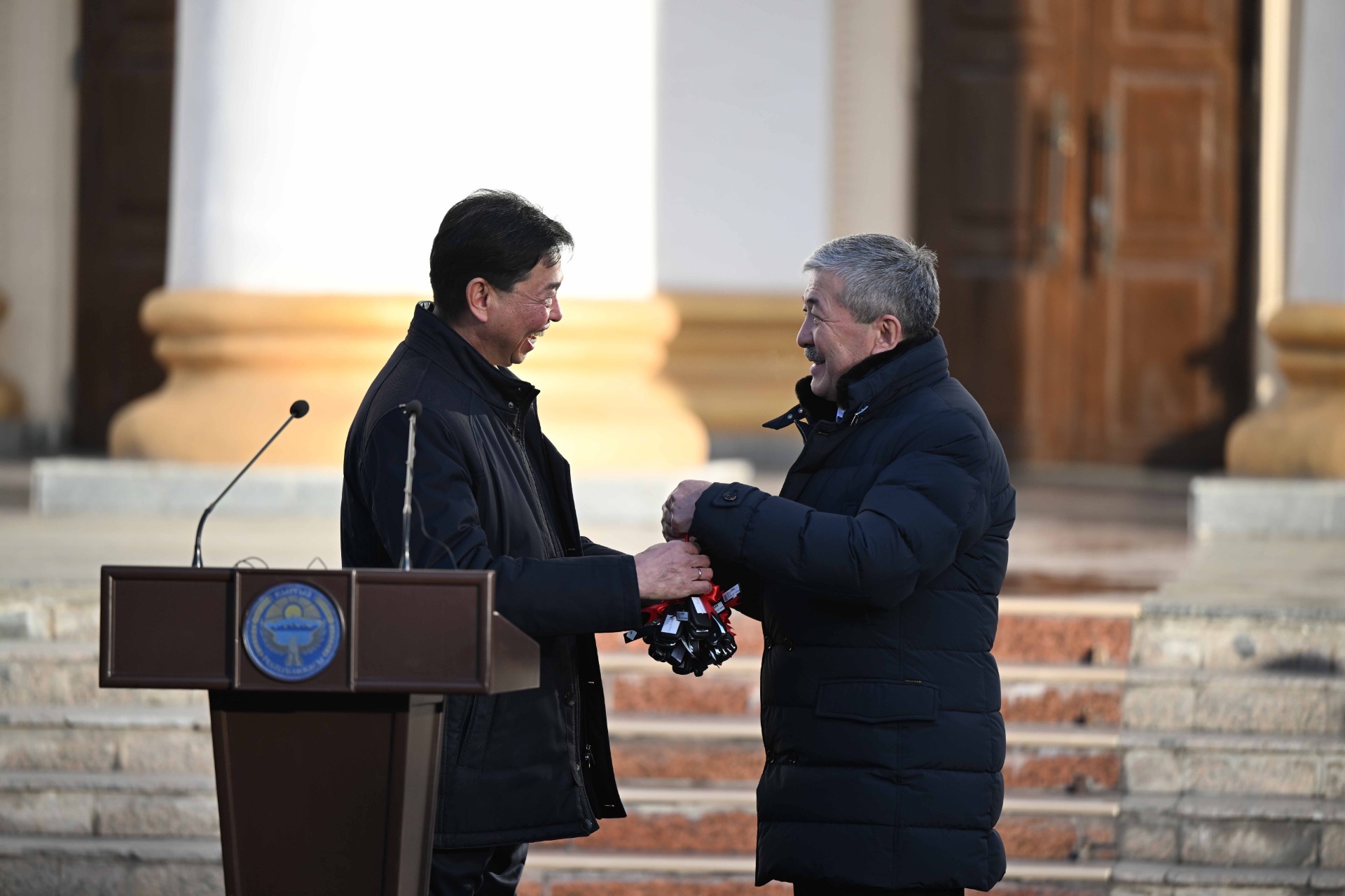 Председатель кабмина Адылбек Касымалиев принял участие в церемонии передачи 54 машин для сотрудников судебного департамента при Верховном суде Кыргызской Республики.